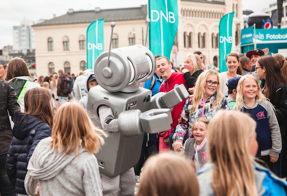 At the landfill Haraldrud outside Oslo there’s an optic robot called “Bagsy”. This robot separates the blue and the green plastic and food waste bags which the population of Oslo throws in the garbage. Face2face made “Bagsy” come to life, to encourage people to sort their waste everytime, everyday. This time “Bagsy” appeared at the VG-lista concert at Rådhusplassen, enlightening young target groups about the city’s environmental plan.