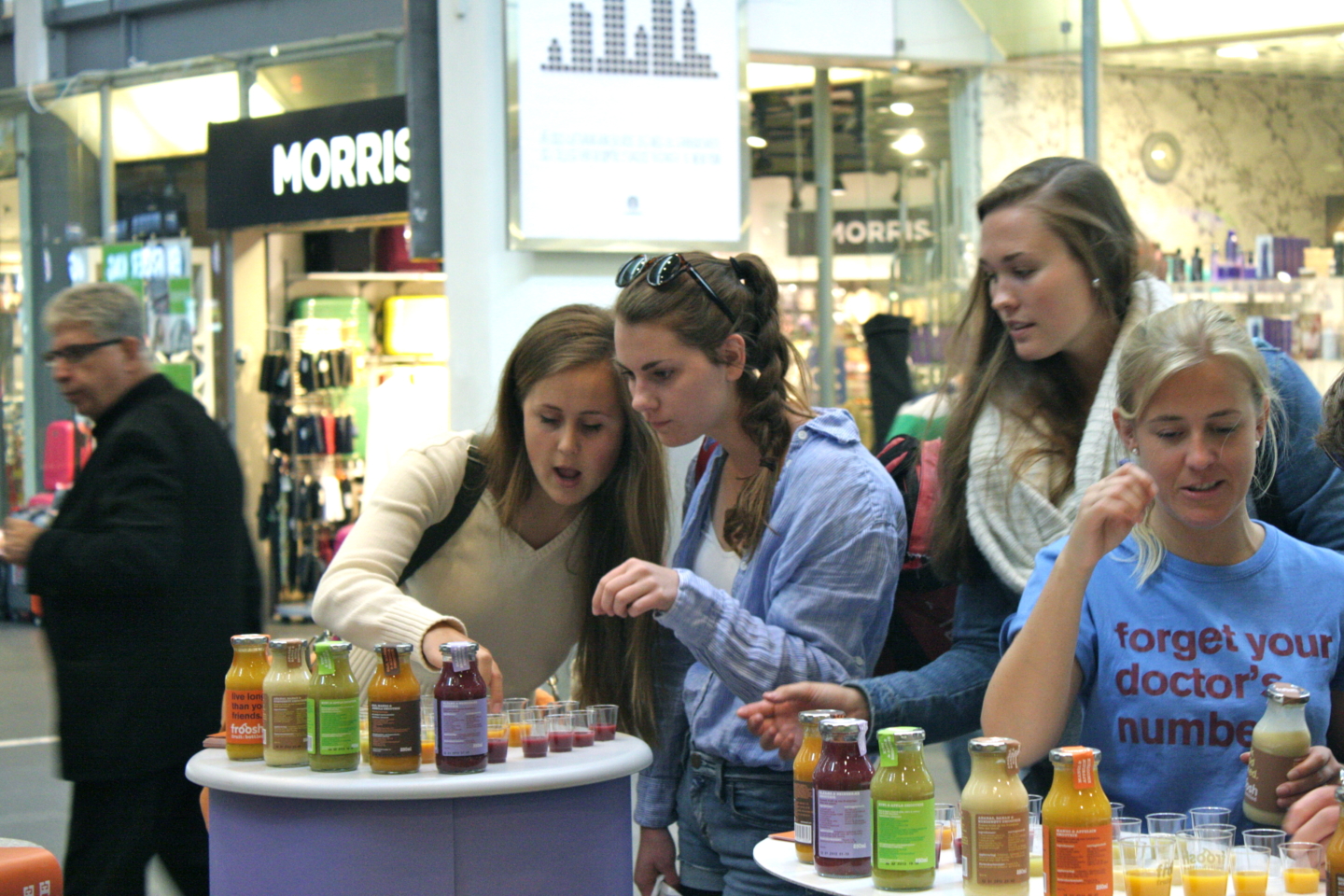 When we did this for Froosh within a wide range of locations in Oslo – at trams, on buses, in shopping streets, at business areas, in parks, at the central railway station – the results were scrumptious! With 7,500 samples on one day, it seemed like the collective climate suddenly changed. Our promoter team set a new standard for the week.