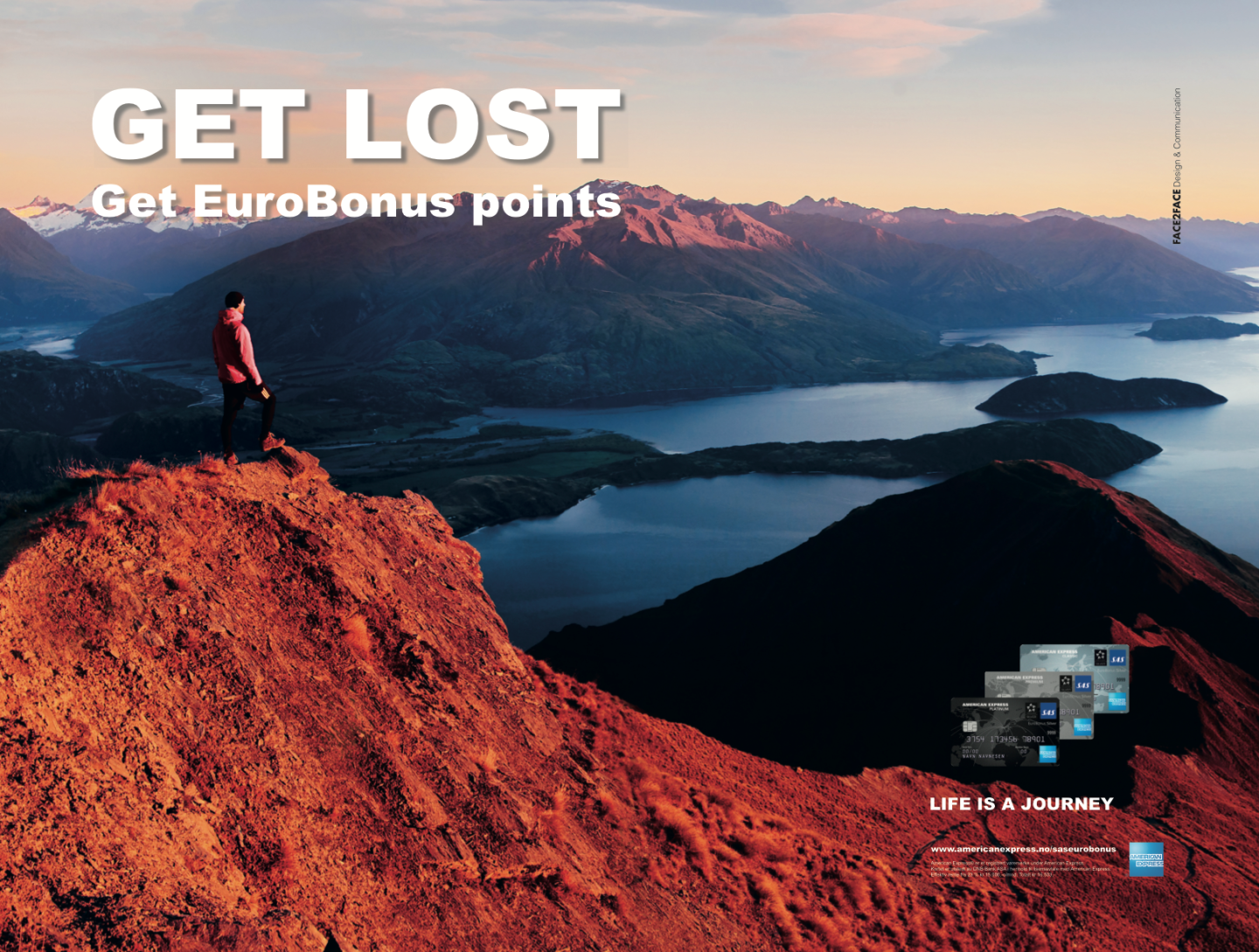 Face2face designed and implemented the multichannel concept “Get Lost” for American Express. The campaign is a creative concept with a clear strategic approach, suitable for all media channels. The idea is to visualise members of American Express as they explore the power of the brand and the membership effect. The goal is to make the defined target groups aware of the unique product qualities, generate positive word-of-mouth and recruit new American Express-members.